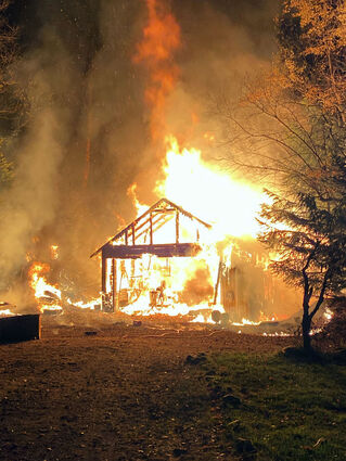 “The garage housed a metal-working shop and the resident informed us there were propane bottles and gasoline cans in the shop. Several small explosions were heard,” Giddings said. “There are no hydrants on Highland Drive so our water tankers were deployed and pumped water to (the fire engine) to supply the attack lines. Several trees were extinguished on the west side of the structure.”