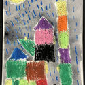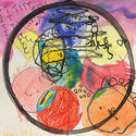 Hazel Schweinefus, Kindergarten, Kandinsky Circles, Oil pastel, ink and tempera paint. Kayci Ferrin, 2nd, Sunset Campsite, ink, pencil and watercolor