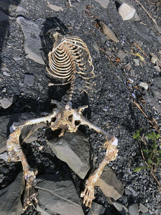 A large headless animal skeleton was found on the Ayiklutu Trail in Chilkat State Park last week. Haines resident Tom Faverty, who wrote a letter to the editor this week on the matter, said he suspected the skeleton belongs to a brown bear he recently encountered in the area that could have been poached. State wildlife biologist Carl Koch said he believes the skeleton is a bear’s but that he can’t be sure which species. A black bear could have been legally harvested. The Alaska Department of Fish and Game requires hunters to turn in a harvested bear’s skull and hide for sealing. Complicating matters, the skeleton was found in the tidal zone, so it might have washed up on the beach. The Alaska Division of Parks and Outdoor Recreation is investigating.