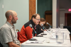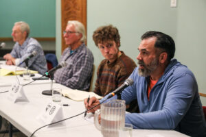 (Rashah McChesney/Chilkat Valley News) Joe Parnell answers questions during a candidate forum on Friday, Sept. 26, 2025, in Haines, Alaska.