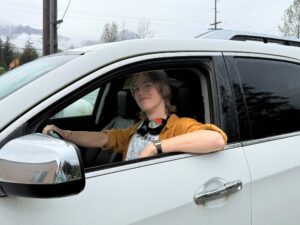 Maddox Rogers, 18, got his driver’s license after traveling to Skagway to take his driver’s test, shown here in the Chevy Equinox he’ll be driving on Sept. 23, 2025, in Haines, Alaska.