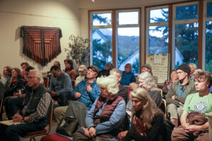 (Rashah McChesney/Chilkat Valley News) Audience members listen to candidates for the Haines borough planning commission answer questions on Friday, Sept. 26, 2025, in Haines, Alaska.