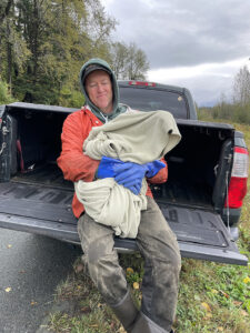 Mark Fontenot holds a juvenile bald eagle he helped to rescue after it was stunned in late September near the Haines airport.