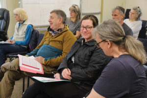 A group of election workers get training from borough clerk Mike Denker on Wednesday, Oct. 1, 2025, in Haines, alaska.