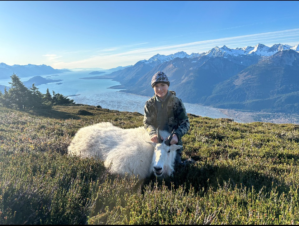 High atop Geisan/Mt. Ripinsky on Oct. 11, just one day before Asher Jimenez’s 14th birthday, he shot his very first mountain goat. Jimenez was with his cousin Liz Segars and friend Jonathan Rasch. They camped for a night before getting the goat. He was a pretty big billy, with 10-inch horns, and was reportedly very heavy to pack out. They will be processing it themselves.