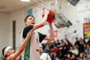 Kyle Tompkins goes up for a layup against Hoonah. Monday, March 23, 2026. (Will Steinfeld/Chilkat Valley News)