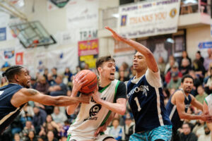 Kaleb Tompkins drives to the rim. Saturday, March 28, 2026. (Will Steinfeld/Chilkat Valley News)