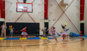 (Lizzy Hahn/ Chilkat Valley News) The “Tiny Dancers” group performs as older students blow bubbles behind them during the Klukwan school circus on Thursday, March 19, 2026.