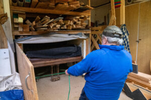 (Lizzy Hahn/ Chilkat Valley News) Michael Marks pulls out the old grand piano that was rediscovered a few months ago. Photographed on Monday, March 30, 2026 in Haines, Alaska.