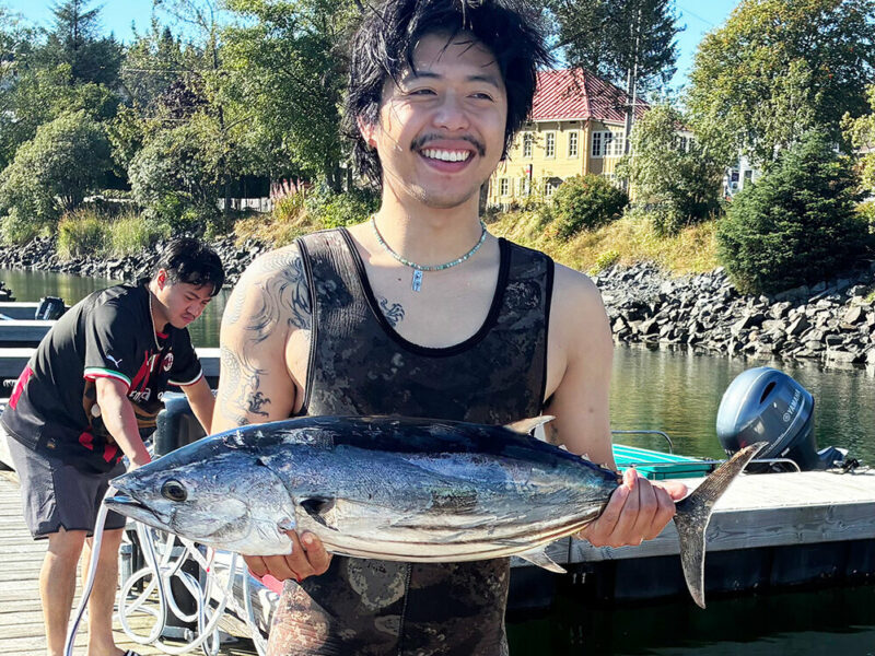 Spearfisher scores an 18-pound skipjack tuna in Sitka harbor