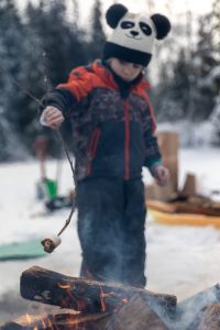 Bus driver Shannon Spring’s son, Ansel Spring says goodbye to students as they get off at school. Ansel Spring plans to attend Klukwan School next year when he is old enough. Thursday, March 6, 2025 (Will Steinfeld/Chillkat Valley News).