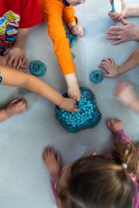 (Rashah McChesney/Chilkat Valley News) A group of preschoolers feel a group of clay beads they made on Tuesday, Feb. 4, 2025, at the Klukwan school in Klukwan, Alaska.