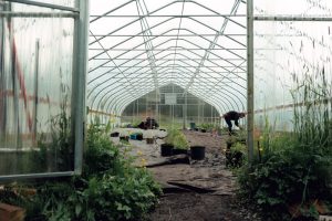 Liz Landes in the Henderson Farm high-tunnel, Monday, June 2, 2025. The farm grew roughly 1000 pounds of food last year, which Landis said was given to volunteers, the senior center, Haines Assisted Living, and other community events.