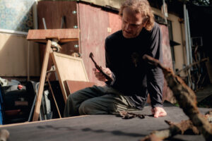 Donald Weigha Hotch carves the bottom of a set of chopsticks during a class with Ketchikan teaching artist Kevin Clevenger on March 7, in Klukwan Alaska. (Rashah McChesney/for the Chilkat Valley News)