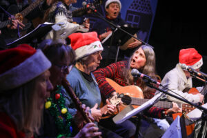 (Rashah McChesney/Chilkat Valley News) The Rusty Gingers band plays during Act II of the Holly Jolly Follies on Sunday, Dec. 14, 2025, in Haines, Alaska.