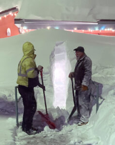 Eddie Bryant and Dave Long dig through the snow to get the Haines Borough office doors open on Monday, Dec. 29., 2025, in Haines.